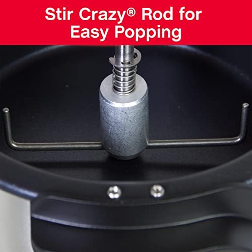 Convenient Features: A patented quick release lever tilts the kettle and empties popcorn into the serving area, where a tilt door makes serving simple; A motorized stirring rod ensures more pops per batch, while a kernel catcher tray catches unpopped kernels