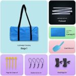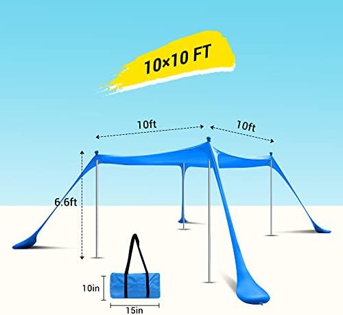 PORTABLE & LIGHTWEIGHT: It comes with 1 carry bag, 1 canopy, 4 poles, 4 ground pegs, 1 sand shovel, 4 elastic cords, and 4 wind ropes. Everything comes stored in the carry bag. Total weighs about 6lb for the 6.6ft x 6.6ft, and about 8lb for the 10ft x 10ft.