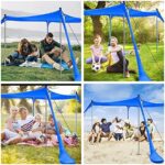 Pop up beach canopy includes one carry bag, one canopy, four aluminum poles, four ground pegs, one shovel, four elastic cord, and four wind ropes. It’s lightweight and portable. Everyhing fit into the one carry bag. It’s multi-purpose, you could choose to use two or four poles at your preference.