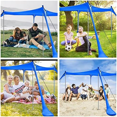 EASY SETUP & STORE AWAY: The poles pop up themselves. Please simply find the four corner tops of the canopy and secure the pole round ends with the elastic cords, fill sands bags. Ready to enjoy! It will bring you a lot of fun. The canopy is machine washable using cold quick wash. Make sure everything dry, then store them in the carry bag.