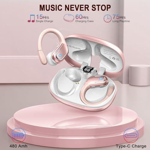 75H Playtime and LED Display: Wireless bluetooth earbud single charge for 15 Hours playtime, comes with 480mAh charging case could offer 4 times charging, let you enjoy a total of 75 hours music time and you’ll always have your music world with you. The LED display on noise cancelling earbud accurately display the remaining power of earbuds and charging case and the charging case supports USB-C charging. Very convenient for your daily life, travel, fitness.