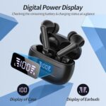【LED Digital Display】Psier T16 bluetooth earbuds get up to 9H playtime on a single charge at 50% volume. Dual digital LED power display outside of the case is to show the power level for charging case and bluetooth headphones. When charging for the case, the LED light will start to flash from 1 to 100.