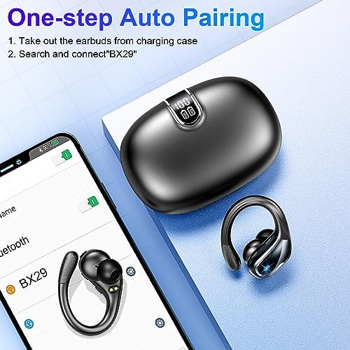 75H Playtime and LED Digital Display: BX29 upgraded bluetooth earbud with a longer battery charging case, it has 10 hrs more playtime than last generation. Up to 75 hrs of total listening time in turn, one earbud can be used for 15 hours on one charge, the case can provide extra 4 times the full charge for earbud. The LED display on over ear earbud accurately display the remaining power of earbud and charging case, the powerful battery allow for all day listening.