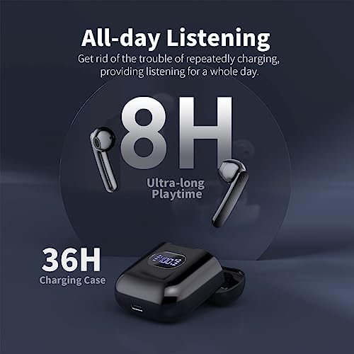 【36H Playtime & Two Charging Methods】Earbuds get 8 hours of listening on a single charge and up to 36 hours when you use the charging case to recharge. Saying goodbye to the troubles of frequent charging. The charging case can be charged via Type C or a wireless charging pad. The rechargeable case can be fully charged in just 1.5 hours using a cable or less than 2 hours with a wireless charger.