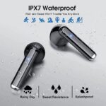 IP7 Waterproof and Weighting 4g only Ultra-Light Earbuds: The pocket-sized charging case does not take up any space to carry, and offer amazing comfort wearing the 4g ultra-light waterproof earbuds providing a secure fit that snuggles nicely in your ears. The waterproof headphones are equipped with nano-coated waterproof material, which can effectively prevent splash damage caused by sweat and raindrops, especially for sports, workouts, gym.