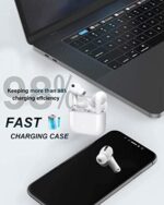 IPX7 Waterproof Nano-coating protects the wireless earbuds and charging case from the damage of the splash by sweat and raindrops. Ergonomic design of earbuds will stay in ear securely whether you’ re running or jumping