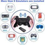 【HDMI HD output】 is pre-install 9 emulators, and pack with 64GB TF card. Equipped with upgraded chip, High-performance chip powerful operation ability, the game is more smooth and stable.No need to download and install by yourself, no internet required, you can play 12000+ classic games just by connecting to the TV.Perfect for your graphical quality and game fluency needs.