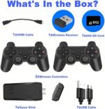 【2 Wireless Controllers】With 2 PCS 2.4GHz wireless controller adapters, the connection is stable and almost zero latency, the maximum connection distance is 32.8 ft. The Video Game Console supports 2 people to play games at the same time, avoiding the interference of wires while gaming. (2 wireless controllers need to install 4 AAA batteries, not included in package).