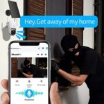 【Instant Alerts &Siren & Flashlight】 Home security camera. When a stranger outside your home in the camera. You would receive message in seconds with a photo preview right in the notification without opening the the App, You could see who comes and goes. Siren and flash spotlight could be set to automatic or mannual turn on. The extra service are that this camera could analys motion behavior,distinguish people,pet,car,and also you could edit motion zone( extra subscription service)