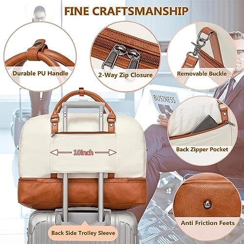 【Inner Large Sealed Waterproof Pocket Function& Multi Pockets Safety Design】The weekender bag provides versatility and comfort. with a total of 6 pockets and 1 shoe compartment, never worry about losing your important items ever again.One inner large sealed waterproof pocket, helps to keep the wet clothes, towels store separately with dry stuffs,protect your toiletries clean and tidy.