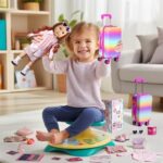 This 18″ doll luggage features 360° spinner wheels that act like a real suitcase. Kids just push the case and let the wheels do the rest.