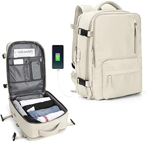 Home Luggage & Travel Accessories WONHOX Large Travel Backpack Women,Carry On Backpack,Hiking Backpack Waterproof Outdoor Sports Rucksack Casual Daypack Fit 14 Inch Laptop with USB Charging Port Shoes Compartment,Beige