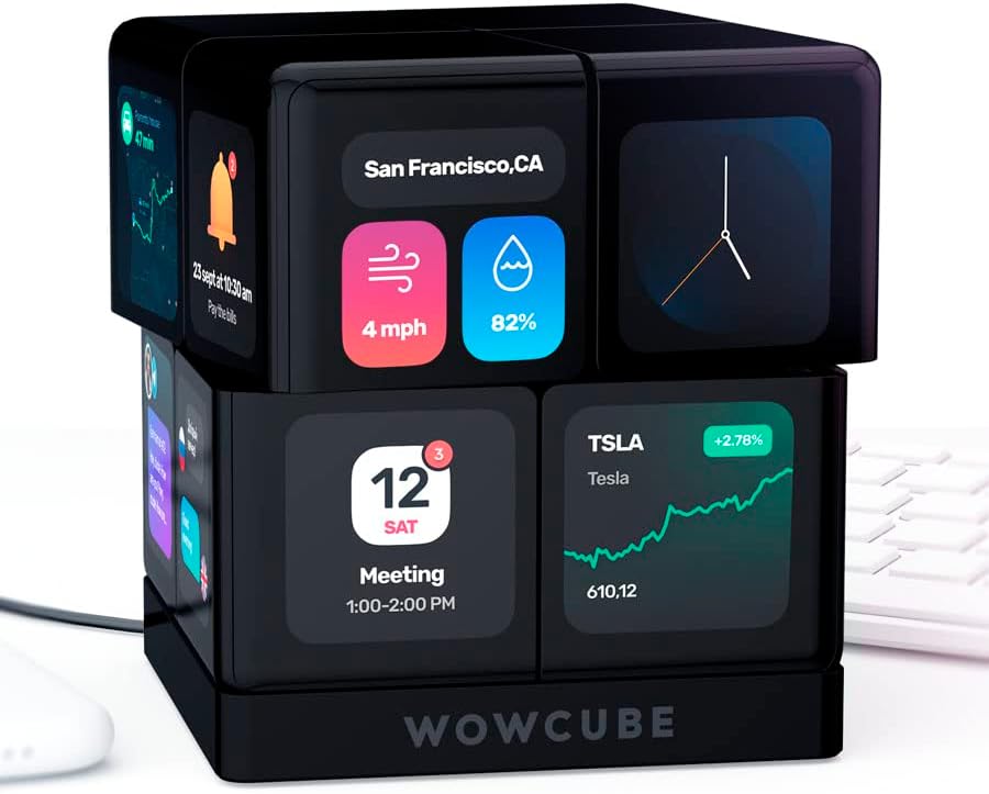 WOWCube entertainment system — the first-in-class immersive-reality innovative console and the gaming platform providing a unique experience of interacting with the digital world as if it’s a real object by twisting, shaking, and tilting it. WOWCube is the first gaming console that allows to play video games on 3D surface. Black Edition version has 20 games and apps together with Cut The Rope included. Travel case, metal and silicon protective pads, extra chargin docs station and protective films are in the box.
