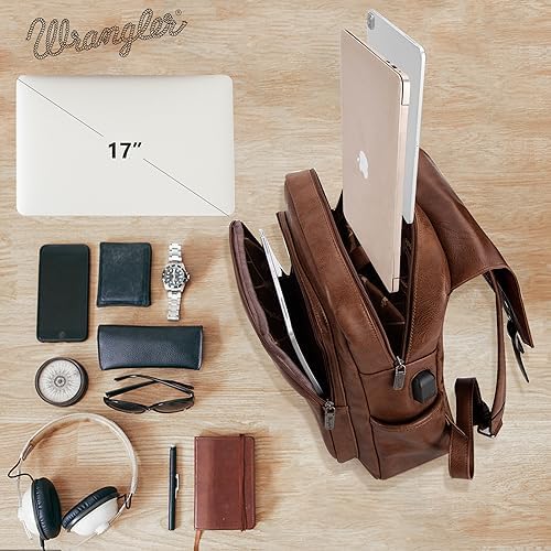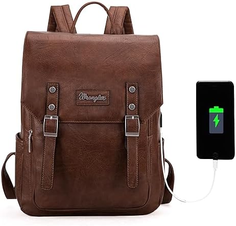 Wrangler leather backpack has a classic design with a combination of vegan leather and strong stitching, makes the whole backpack more attractive.