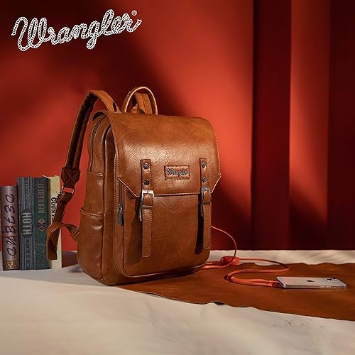Wrangler leather backpack has a classic design with a combination of vegan leather and strong stitching, makes the whole backpack more attractive.