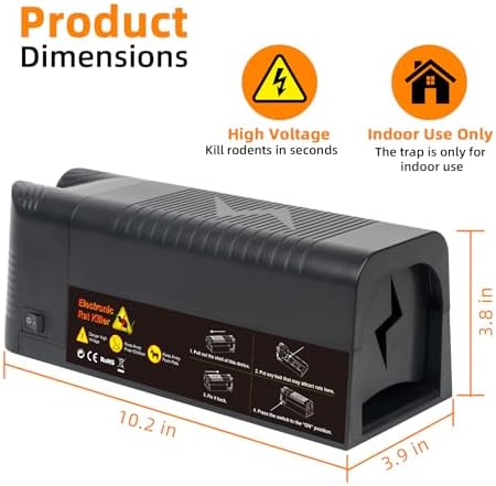 Sleek and Discreet Design: We understand the importance of maintaining the aesthetics of your living or working space. That’s why our rodent zapper comes in an inconspicuous, non-visible design. It blends seamlessly into your environment, ensuring that pests remain oblivious to its presence while you enjoy a pest-free space.