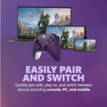 Experience the modernized design of the Xbox Wireless Controller in Astral Purple, featuring sculpted surfaces and refined geometry for enhanced comfort during gameplay. Stay on target with a hybrid D-pad and textured grip on the triggers, bumpers, and back-case. Seamlessly capture and share content such as screenshots, recordings, and more with the Share button. Connect using the USB-C port for direct plug and play to console and PC. Support for AA batteries is included on the rear. Get up to 40 hours of battery life. Plug in any compatible headset with the 3.5mm audio jack. Use the Xbox Accessories app to remap buttons and create custom controller profiles for your favorite games. Quickly pair with, play on, and switch between devices including console, PC, and mobile.