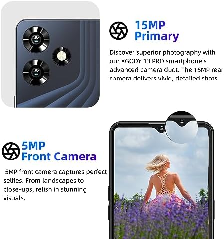 【15MP+5MP Camera】Featuring a 15MP rear camera, our unlocked android phone excels in capturing each life’s moment with remarkable clarity, enhancing the quality of your photos. Additionally, the 5MP front-facing camera ensures a flawless selfie experience, keeping you at your best for social media.