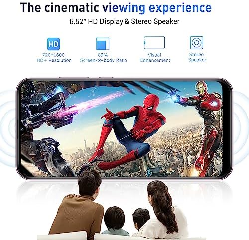 【Vibrant Display and Stylish Design】Immerse yourself in captivating visual effects on the 6.5 inch large screen with a resolution of 720×1600. Whether you’re reading articles or watching videos, the display is clear and vivid. Paired with a 15MP rear camera, the mobile phone easily captures the beauty of details. The vertically arranged three rear cameras exude minimalism and style, complemented by the unique matte back cover, which lends the unlocked phone a premium and elegant texture.