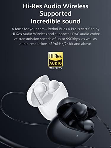 Hi-Fi Sound Quality, Dual Dynamic Drivers – Create your own personal sound system: Redmi Buds 4 Pro Wireless Earbuds features an all-new dual dynamic driver system, which consists of a 10mm aluminium alloy diaphragm and a 6mm titanium diaphragm for treble frequencies. Together, the two drivers combine to deliver crystal-clear treble and rich bass in a wide range of genres.