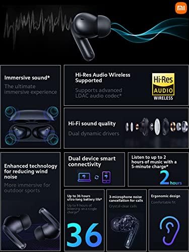 Dual Device Smart Connectivity – Switch effortlessly between your smartphone and computer: The earbuds can connect to two Android, iOS or Windows devices at the same time, allowing you to use the same headset when you’re in the office. On compatible MIUI devices, the MIUI Pop-up for Quick Pairing requests automatically appear when you open the charging case (with earbuds) near your phone.*