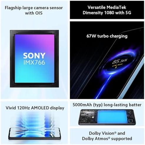 MediaTek Dimensity 1080 (6 nm) Octa-core (2×2.6 GHz Cortex-A78 & 6×2.0 GHz Cortex-A55) GPU: Mali-G68 MC4 Bluetooth 5.2 Wi-Fi Protocol: 802.11a/b/g/n/ac