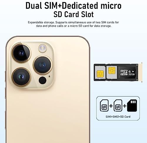 【48MP +13MP CAMERA】With i14 Pro Max phone’s dual camera–48MP main camera,13MP selfie camera, 2MP macro camera, capture your favorite moments in vivid color to mark every glorious moment. i14 Pro Max allows you to be the director of your own life. Get your phone unlocked upon recognizing your face with AI face unlock.