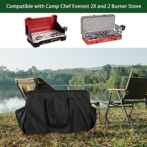 Xxerciz Camp Stove Carry Case Compatible with Camp Chef Everest 2X/2 Burner Stove, Portable Carrying Cover Camping Stove Storage Bag with Two Gas Tank Pockets (Bag Only)