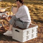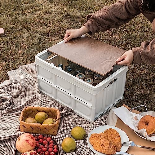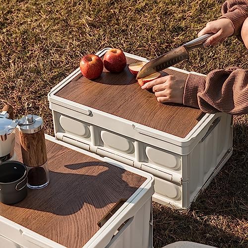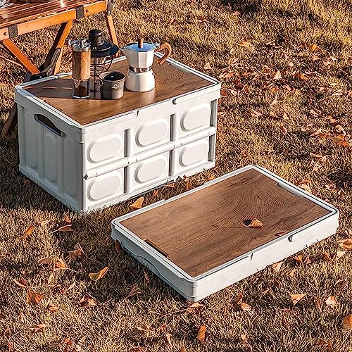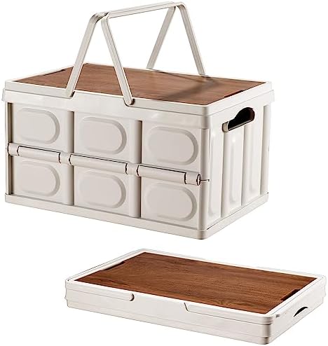 Outdoor Camping Storage Box with Wooden Lid, Folding Camping Organizer, Folding Car Storage Box, Household Storage Box.Outdoor folding storage box, can be used for car storage, home storage, outdoor picnic. Multi-functional outdoor folding storage box, camping good partner, you can use it as a fruit cutting board when camping, you can also use it as a dining table. Outdoor folding storage box, portable design, easier and more convenient to handle. Large capacity, good partner for camping, can store all kinds of camping equipment, no need to carry large and small packages. The outdoor folding storage box bears a lot of weight and can be used as a stool.