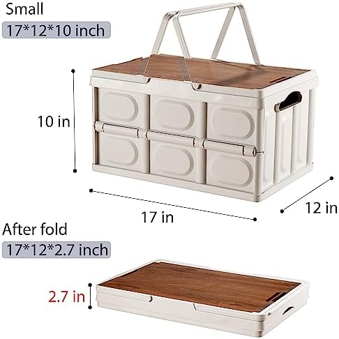 YEEON Outdoor Camping Storage Case with Wooden Lid, Folding Camping Organizer, Folding Car Storage Case, Household Storage Box (Small)