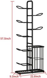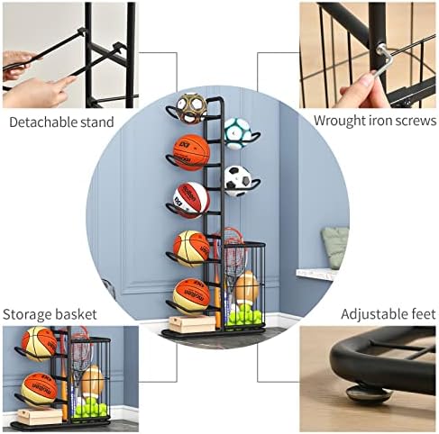 🏈【Load Capacity, Size, Color】This basketball rack for balls has a load capacity of up to 20 pounds, with the storage basket measuring 21 inches high. The overall size of the ball storage rack is 22.8 x 9.3 x 57.5 inches, and it comes in black.