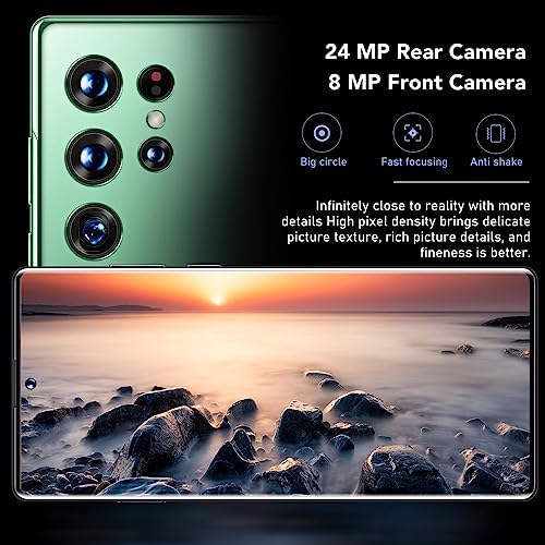 HIGH DEFINITION CAMERA: Unlocked Smartphone xperience excellent photography with 24MP rear and 8MP front cameras, as well as options for filters and stickers, and fast face unlock in just one second.