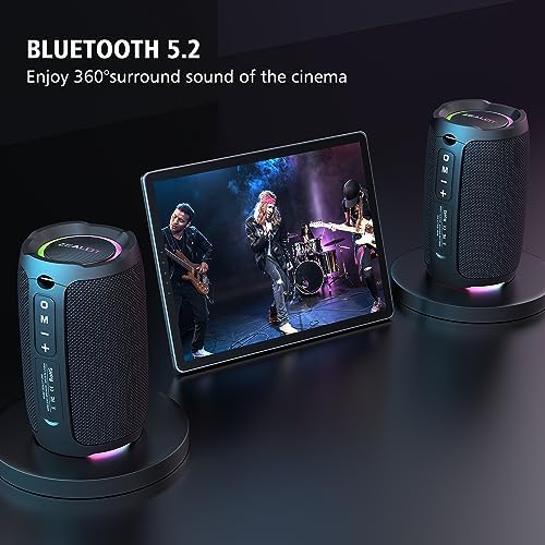 ♩♪♫ [MUSIC ON-THE-GO] 3.46’*3.46’*5.55 inch portbale size body make it suitable for any occassions. True Wireless Pairing to achieve a extra loud audio for better experience.