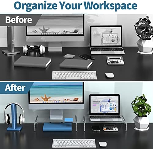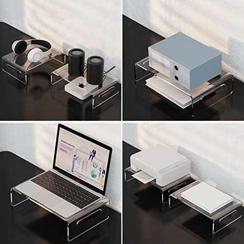 Multi-functional: Featured with a 11.8 x 7.85 inches platform,clear monitor stand is suitable for most devices, including PC monitors, laptops, printers, fax machines, speakers, TV monitors, etc.. Perfect for home study room, office and meeting room.