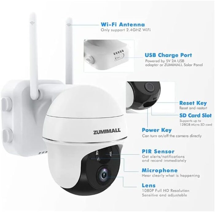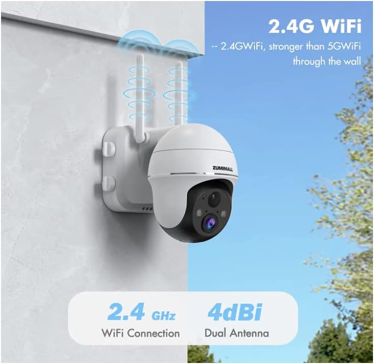 【Newly Rechargeable Battery & 100% Wireless & 2.4G WiFi】-Security camera battery powered update the defect of the old 15000 battery with poor battery life, Zumimall wireless outdoor wifi security camera with new version rechargeable battery, provides 3-8months of uninterrupted use. Best choice for sunless areas. With a 4dBi antenna, the outdoor cameras wireless can connect your 2.4G WiFi quickly from a farther distance. (not support 5GHz WiFi)