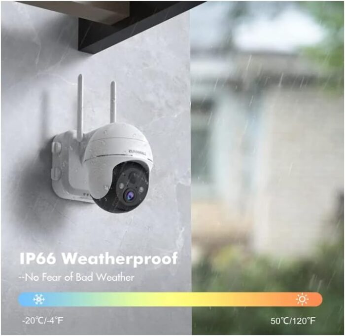 【IP66 Waterproof & Wide Applicability】- The wireless cameras for home security have waterproof and dustproof housing to ensure they keep working through any weather. The standard operating temperature of -13°F to 140°F (-25°C to 60°C ) can show excellent performance. One APP can add multiple Zumimall cameras to control. You can equip this outdoor security camera together anywhere in your home. Such as indoor/outdoor, yard, garage, shop, and other places.